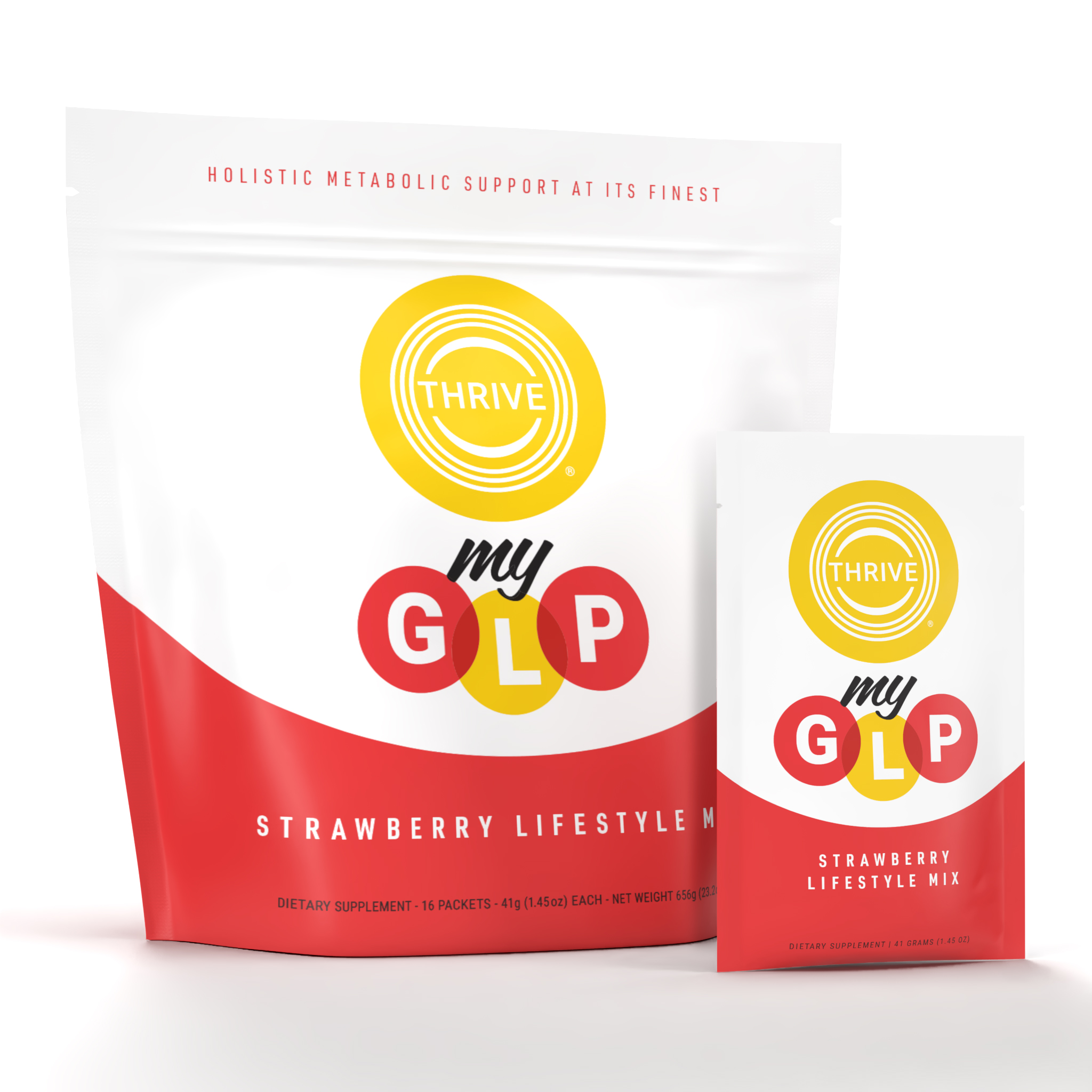 Mix or blend one packet of your myGLP Strawberry Protein shake with at least 8-10 oz. water or milk. For best results, drink in the morning 20-40 minutes after taking THRIVE myGLP Capsules. Can be used as a meal replacement for lunch as well.